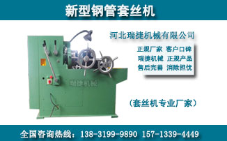 河北省邢台市瑞捷机械设备公司,创建于2003年,坐落在全国的机械制之乡-邢家湾工业区。本厂专业制造套丝机,TS80型套丝机,TS64型套丝机,TS50型套丝机,螺栓套丝机,S8139型套丝机,S8148型套丝机圆钢/圆管套丝机及切线板牙头等配套产品。